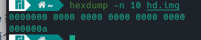 现在,我们再通过hexdump查看hd.img的内容(由于文件内容输出过多,将输出写入文件out.txt中)