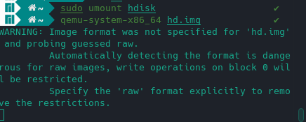 之后,我们使用命令qemu-system-x86_64 hd.img即可从我们创造的虚拟硬盘启动